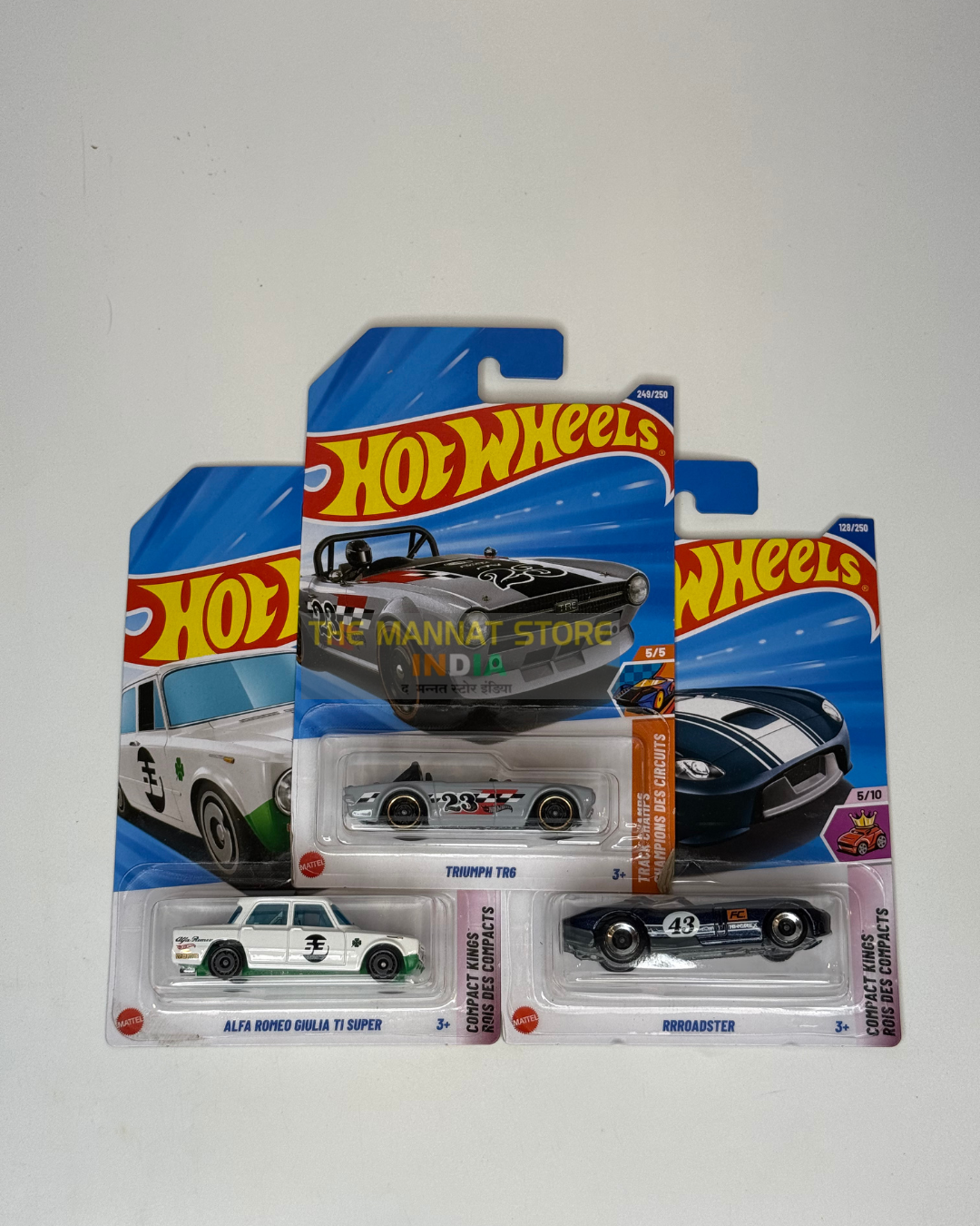 Hot Wheels 2024 Indian Q Case – Set of 3 (Triumph TR6, Alfa Romeo Giulia TI Super, R Roadster)