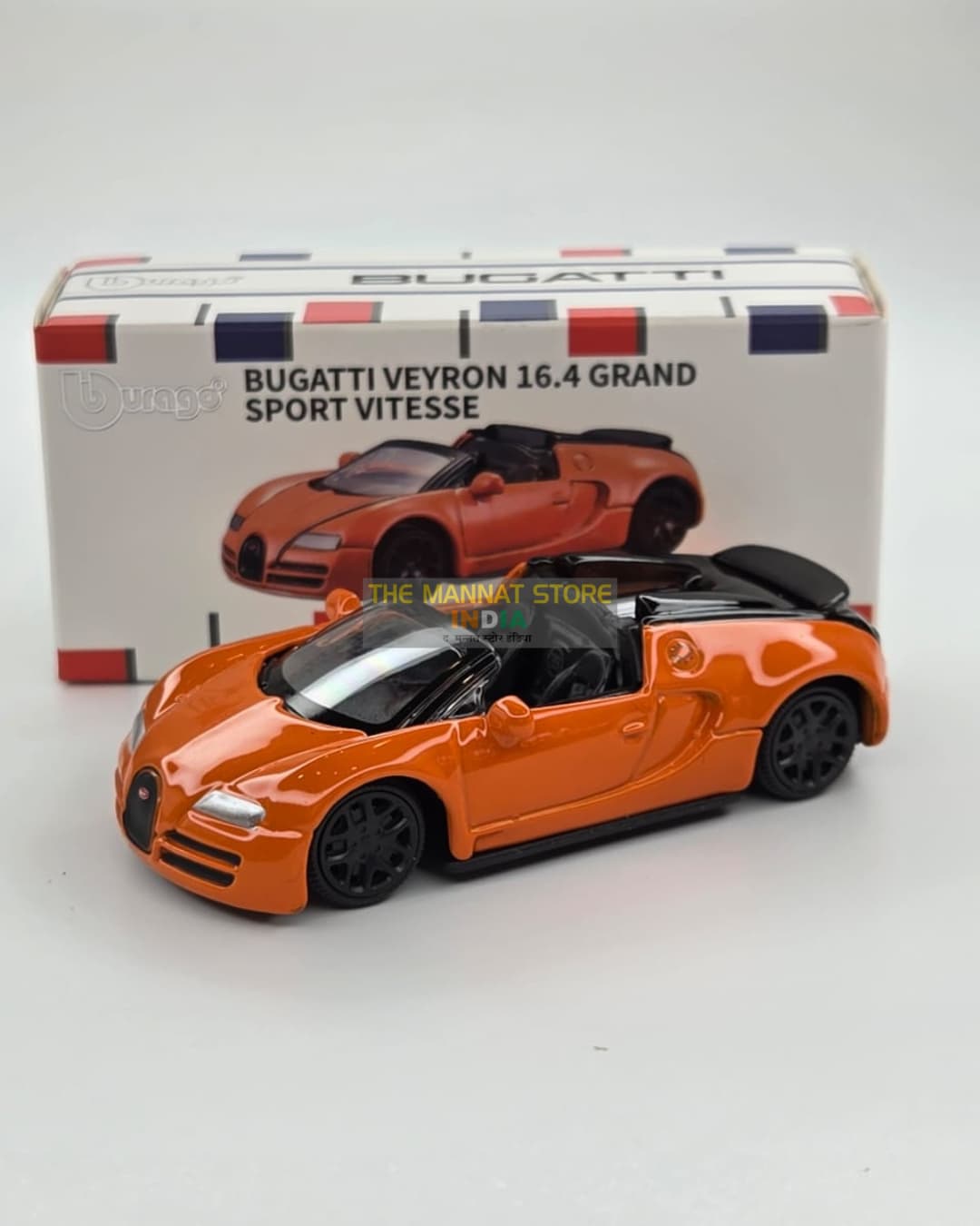 Experience one of Bugatti’s most iconic hypercars in collectible form with the Official Bburago Bugatti Veyron 16.4 Grand Sport Vitesse (1:64 Scale). This diecast model captures the extreme styling, aerodynamic curves, and luxurious design of the real Grand Sport Vitesse — the world’s fastest open-top production car.