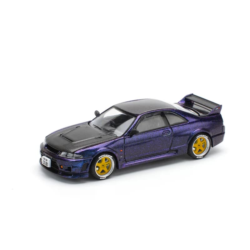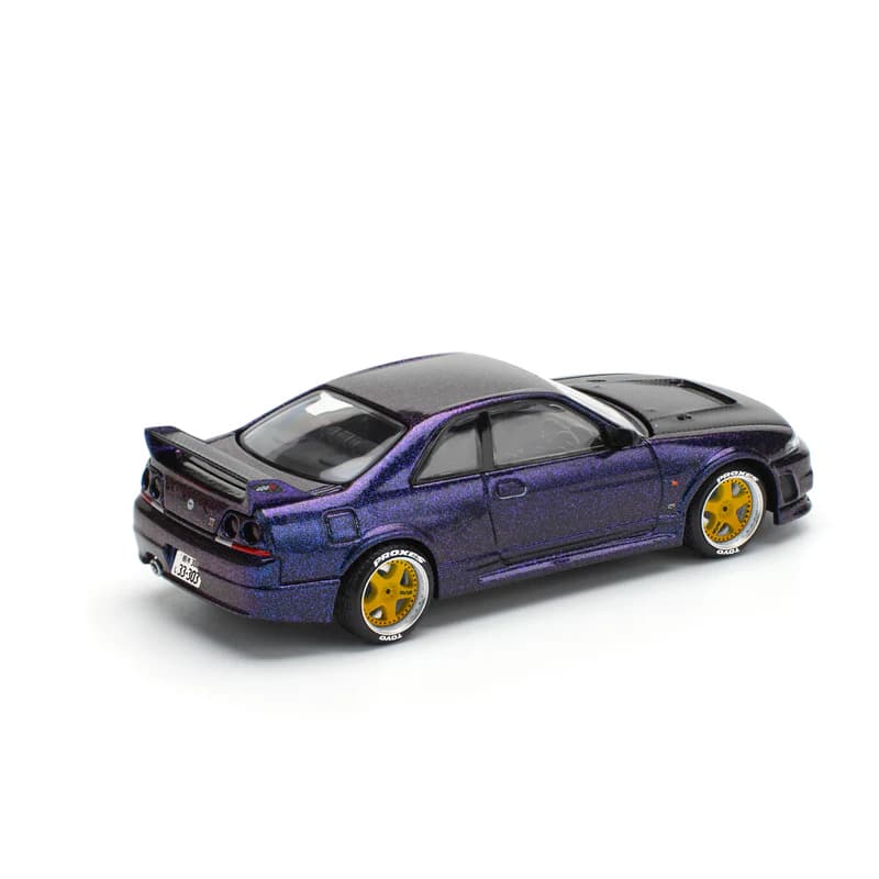 Pop Race faithfully recreates the R33 GT-R in 1:64 scale, capturing the car’s muscular proportions, wide stance, and unmistakable Skyline silhouette. Finished in the iconic Midnight Purple, this model is based on the legendary Nissan Skyline GT-R R33 (1995–1998) – one of the most celebrated performance cars to ever come out of Japan. Part of Nissan’s iconic GT-R bloodline, the R33 earned its reputation as “Godzilla” thanks to its race-bred engineering, dominance on track, and immense tuning potential.